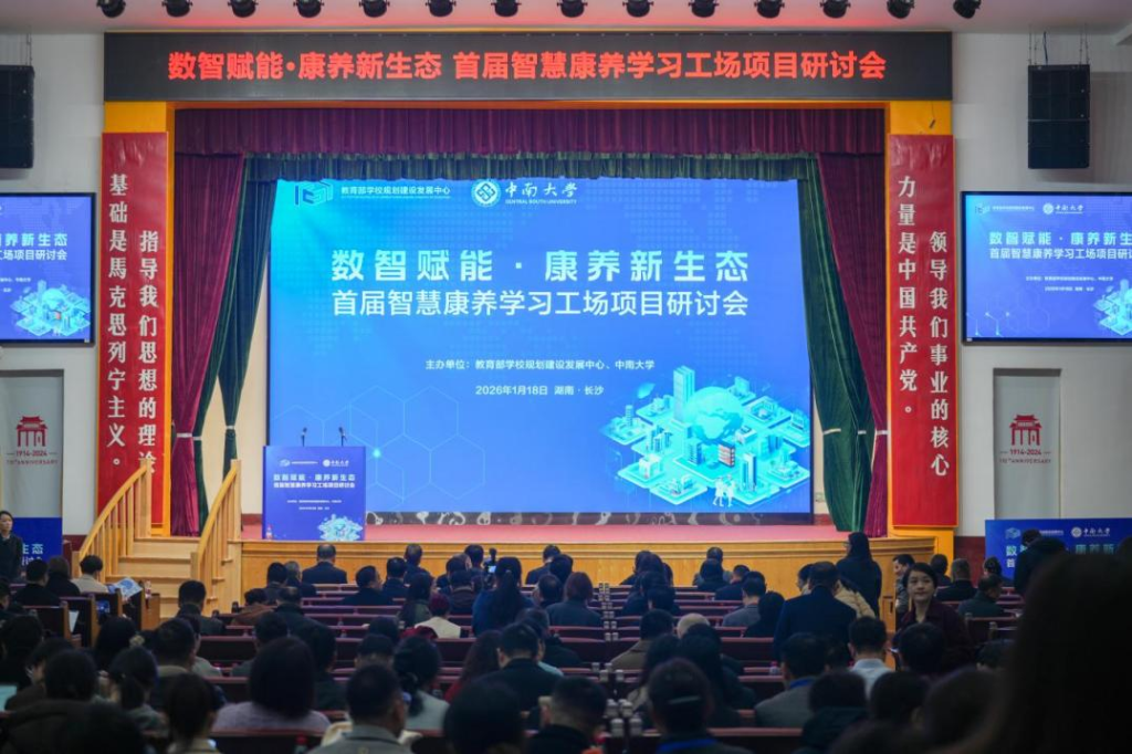 本网讯 1月18日,由教育部学校规划建设发展中心、beat365在线唯一官网联合主办的“数智赋能·智慧康养新生态——首届智慧康养学习工场项目研讨会”在beat365在线唯一官网举行。湖南省卫健部门、智慧康养产教融合创新联合体成员单位,全国康养类高校、科研院所、行业协会及产业界代表共话智慧康养发展新路径。教育部规建中心副主任陈建荣、beat365在线唯一官网副校长何旭辉出席开幕式。